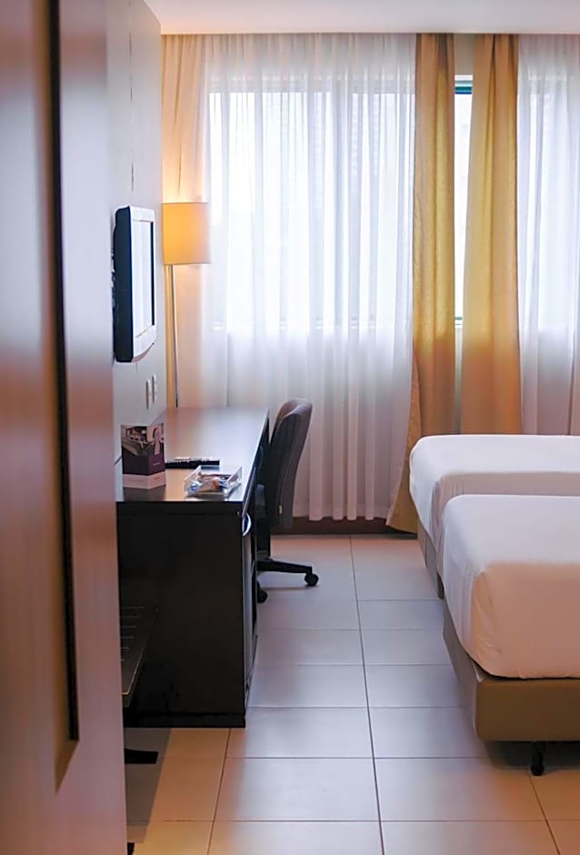 This air-conditioned room features a flat-screen TV with cable channels, mini-bar and private bathroom with a hot shower, hairdryer and free toiletries. It has no balcony.